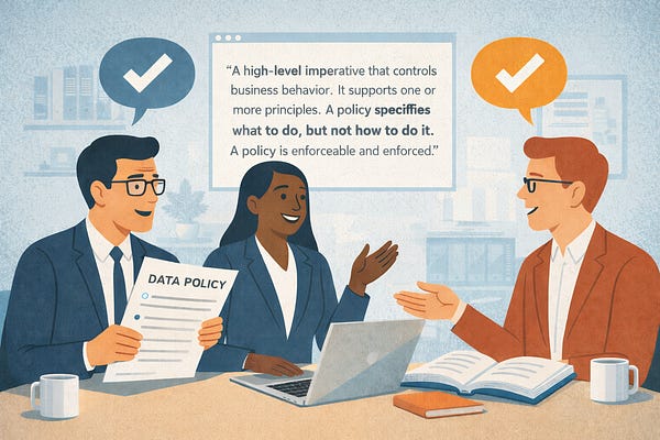 Policies are the laws of an organization. They are not detailed rules specifying how to do things, but provide a framework of what must be done.